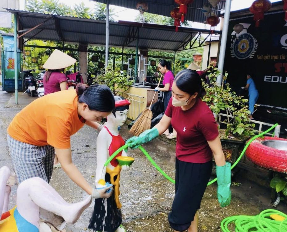 CÁC CÔ GIÁO TRƯỜNG MẦM NON HOA MAI TỔNG VỆ SINH LAO ĐỘNG CHUẨN BỊ NĂM HỌC MỚI