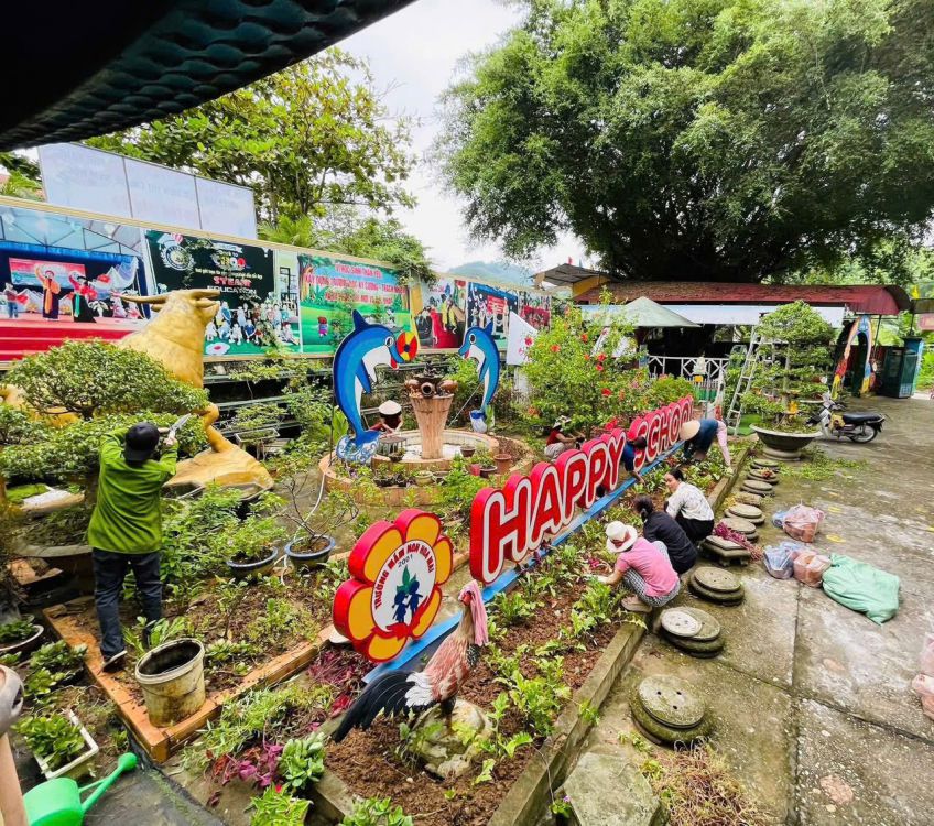 Công tác vệ sinh môi trường đặc biệt được chú trọng từ việc tổng vệ sinh, các khu vực xung quanh trường, vệ sinh bếp ăn, làm sạch khu vui chơi, đồ chơi ngoài trời, trồng hoa, cây cảnh, làm sạch cỏ xung quanh trường lớp.